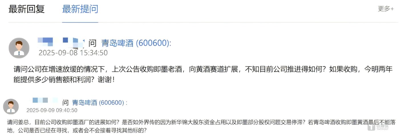 业绩说明会上,有投资者直接追问 「收购是否因新华锦资金问题与标的股权问题停滞」,青岛啤酒不仅未正面回应,还将该问题屏蔽。