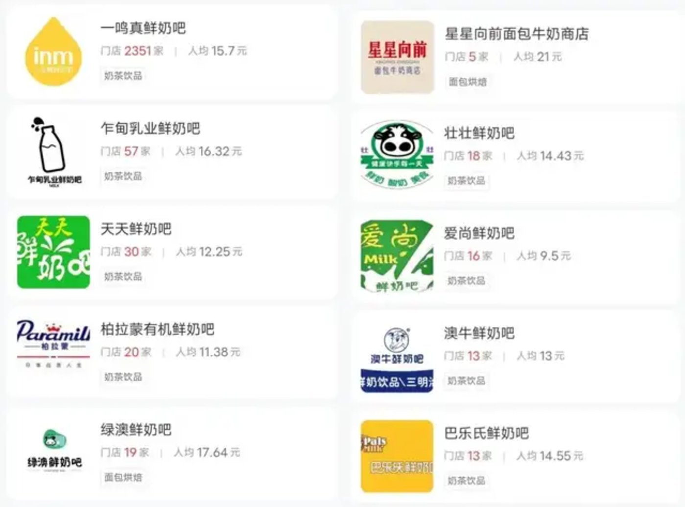 目前,鲜奶吧、面包牛奶商店等新型模式已在各个城市街区崭露头角。《中国乳业》 杂志指出,当前全国现有与烘焙结合的各类奶吧、牛奶商店已达到 2 万多家,并不断有新晋连锁品牌崛起,如消费者认知度较高的以 「牛奶+烘焙」 为核心经营模式的一鸣鲜奶吧,去年净利润已达 3300 万元,门店布局已从最初的江浙逐渐辐射至全国。