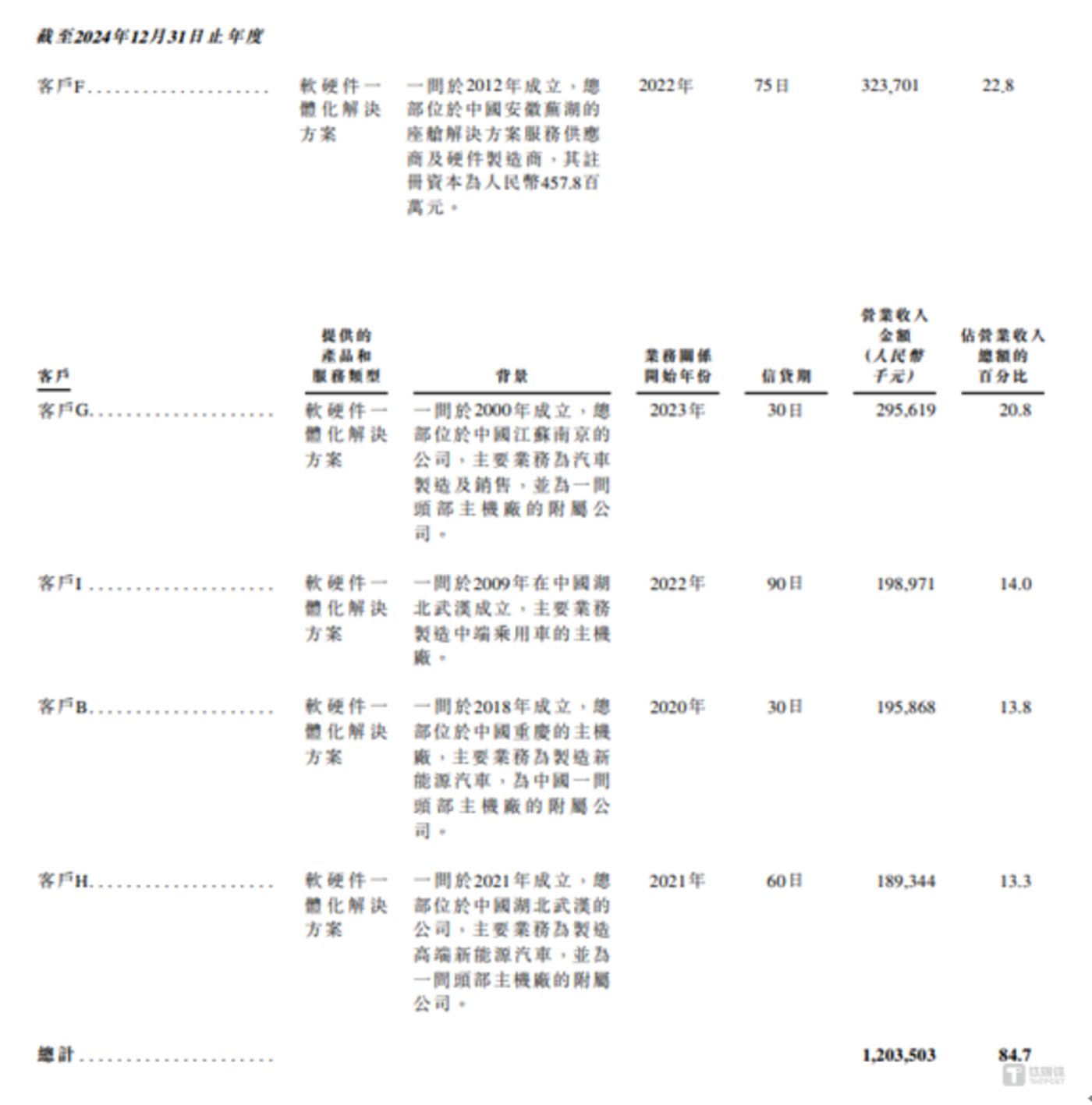 值得关注的是,该解决方案的销售高度依赖前五大客户。报告期内,镁佳股份向前五大客户产生的销售收入分别为 35985.2 万元、137972.1 万元、120350.3 万元,分别占当期营业收入的 92.8%、91.2%、84.7%,尽管客户集中度在 2024 年略有下降,但整体仍处于极高位水平,客户集中特征极为显著。
