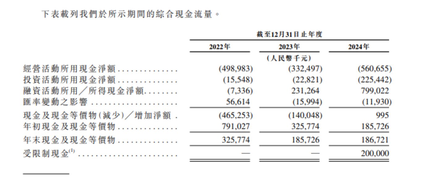 更严峻的是,公司 「自我造血」 能力的缺失加剧了生存压力,近三年,经营活动产生的现金流量净额持续净流出,累计规模约 14 亿元。尤为值得警惕的是资金储备与消耗速度的严重失衡,截至 2025 年 4 月末,公司现金及现金等价物仅 1.96 亿元,而近年来每年经营性现金净流出规模稳定在 3 亿元至 5.6 亿元区间。以当前的资金储备和消耗节奏来看,现有资金能否支撑公司持续运营、支撑时长几何,均存在显著不确定性。这种 「持续失血+储备有限」 的双重困境,不仅直接威胁着公司的短期生存能力,更让其长期发展前景面临着更为严峻的考验。