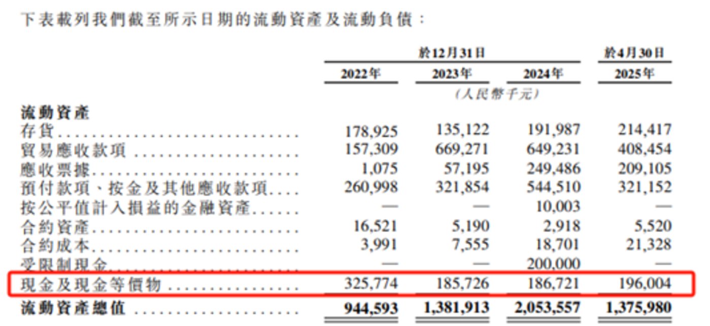 事实上,镁佳股份的经营困境不仅体现在账面亏损,其 「自我造血」 能力的缺失更显严峻。报告期内,镁佳股份经营活动产生的现金流量净额分别为-49898.3 万元、-33249.7 万元、-56065.5 万元,经营性现金始终净流出,近三年合计净流出了约 14 亿元。更值得警惕的是资金储备与消耗速度的失衡,截至 2025 年 4 月末,公司流动资产中现金及现金等价物仅为 1.96 亿元,而近年来其每年经营性现金净流出规模稳定在 3 亿元至 5.6 亿元区间。以当前现金储备及资金消耗速度测算,现有资金能否支撑公司持续运营、支撑时长几何,均存在显著不确定性。这种 「持续失血+储备有限」 的双重压力,无疑让公司的短期生存能力与长期发展前景面临更严峻的考验。