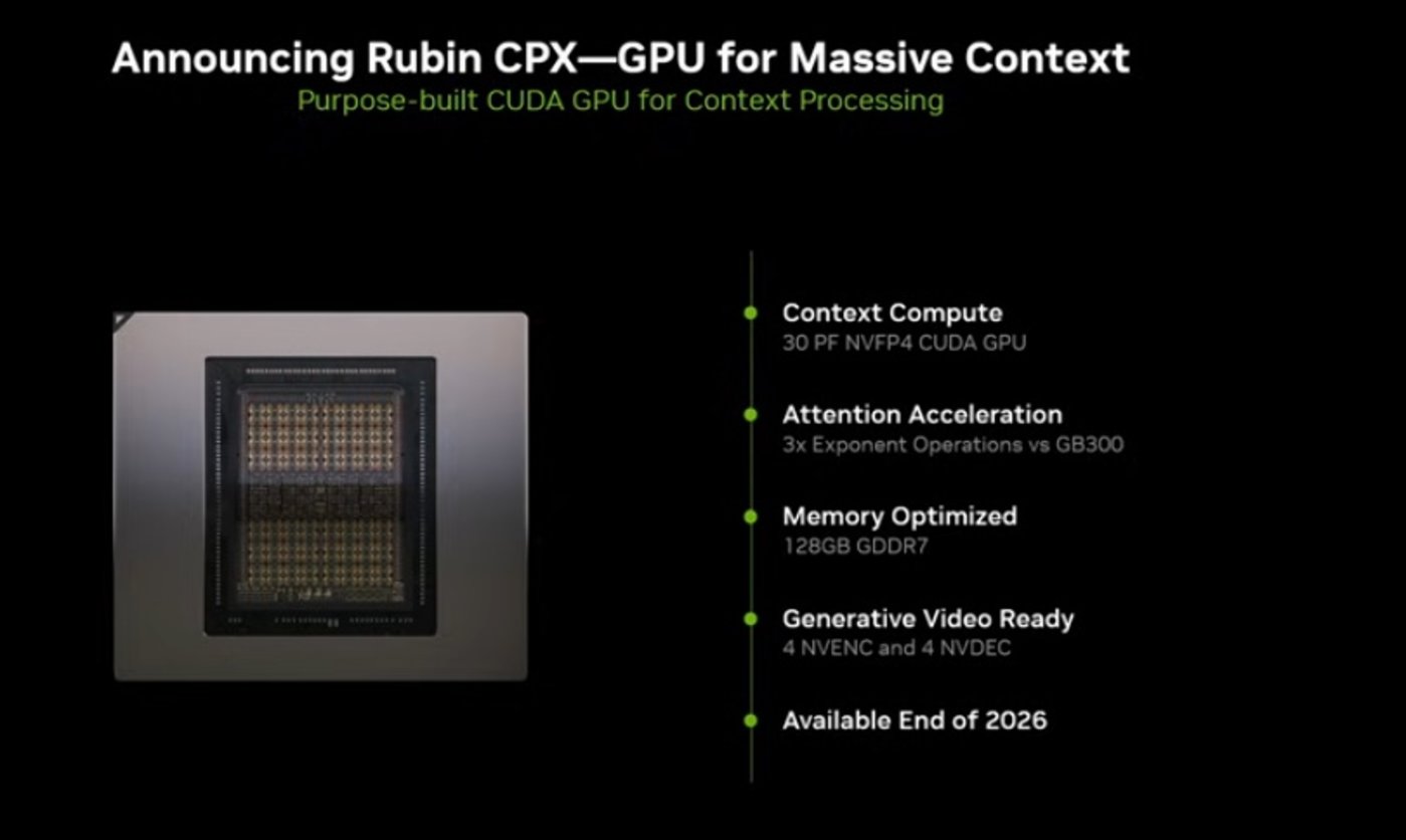 在$博通 (AVGO.US) ASIC 持续追赶的情况下,英伟达在 AI 大会 (AI Infra Summit) 上突然宣布推出 「Rubin CPX」 GPU,这是一款专门为海量上下文处理设计的新一代 GPU。该处理器致力于以突破性的速度与效率,使 AI 系统能够处理长达数百万个 token 的任务,包括软件编码及生成视频等方面。