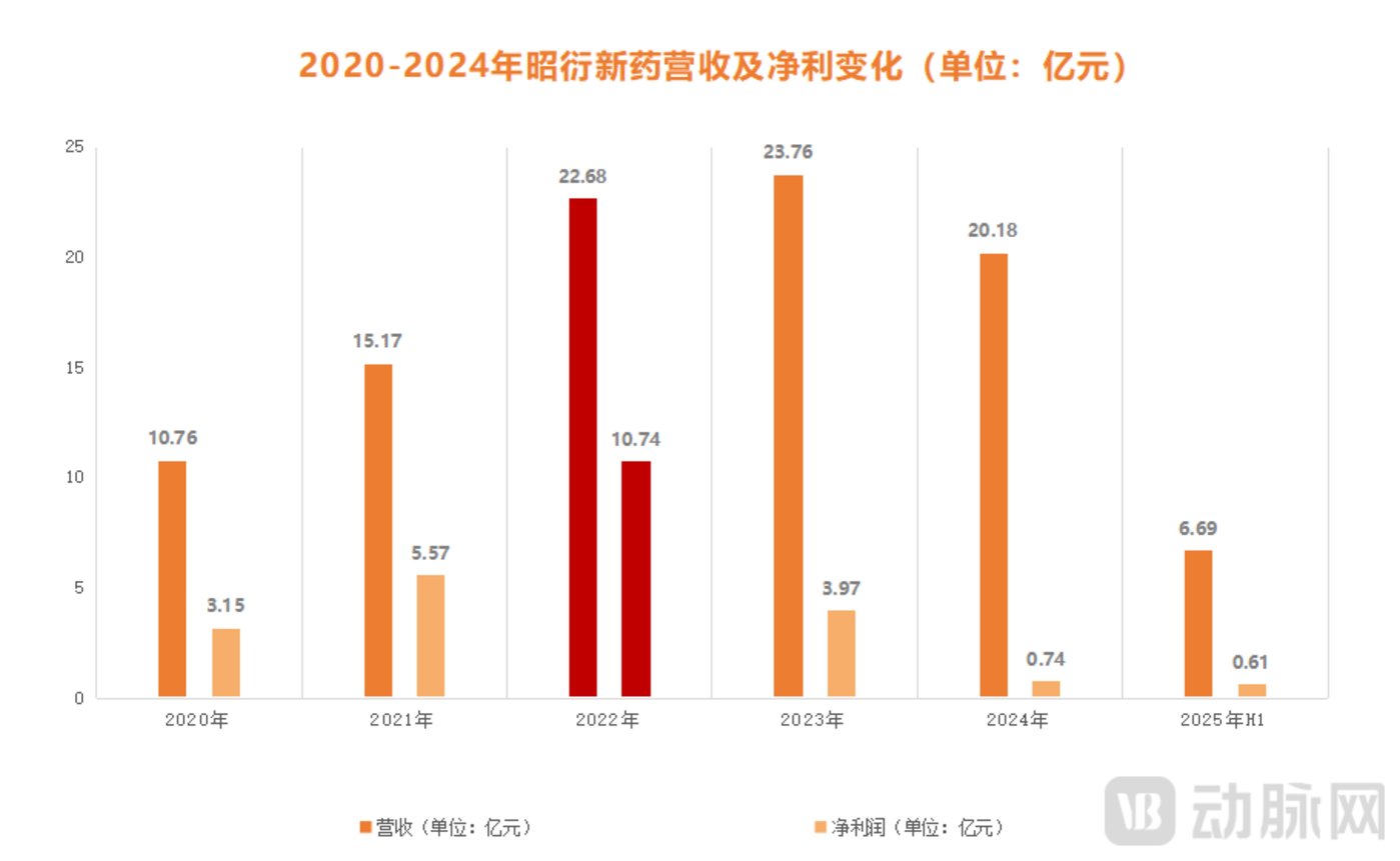 不过,这波浪潮来得快去得也快,进入 2023 年后,随着整个资本市场遇冷,实验猴的价格也急转直下,甚至一度低至 5 万元一只,较巅峰期直接腰斩了近 4 倍。这也因此让昭衍新药的业绩遭受重创,根据年报显示,2024 年昭衍新药营收 20.18 亿元,同比下滑 15.07%;归母净利润 0.74 亿,同比下滑 81.34%,已经站在了亏损的边缘。