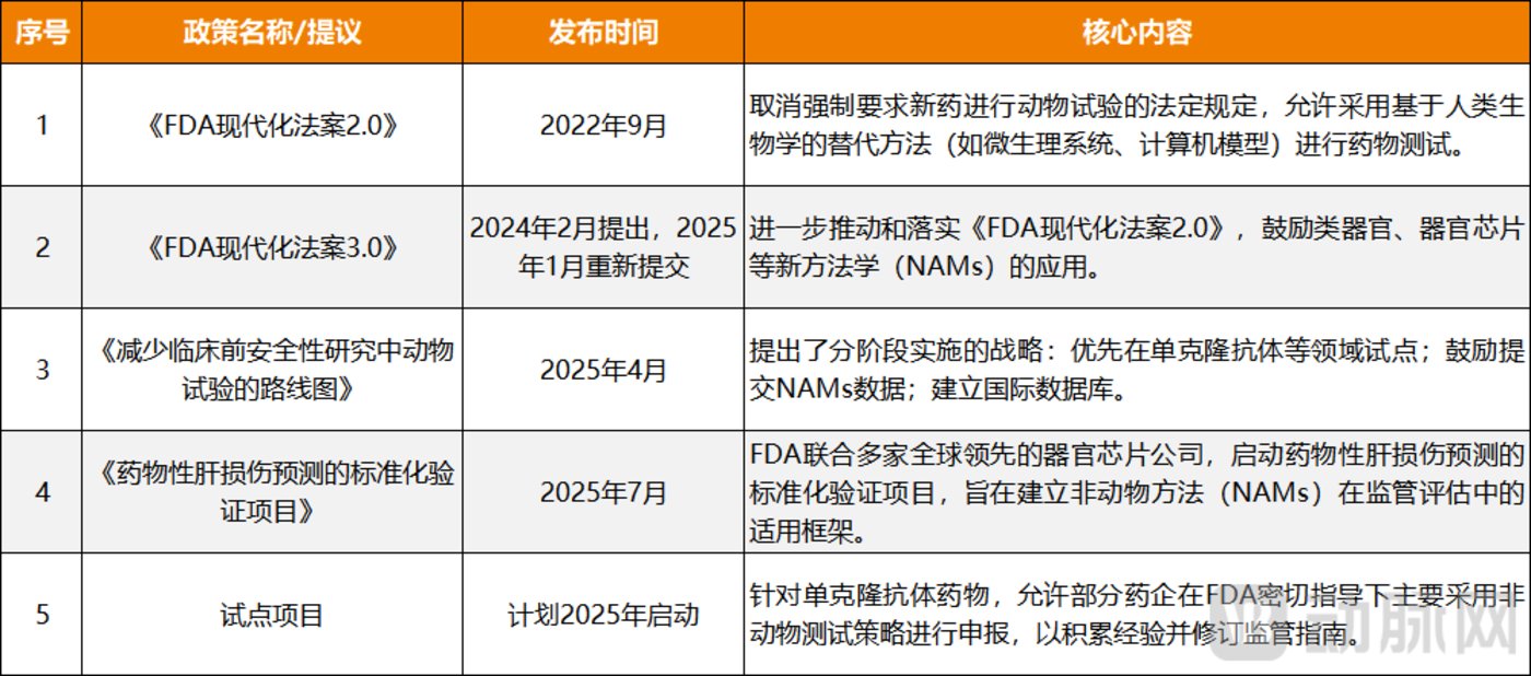 对于这一趋势,某药企研发主管表示,「在新技术浪潮和伦理诉求的推动下,再叠加相关政策不断落地,动物实验显然已不再是唯一选项,类器官芯片及 AI 模拟试验等新模式正加速成为可靠的替代方案。」