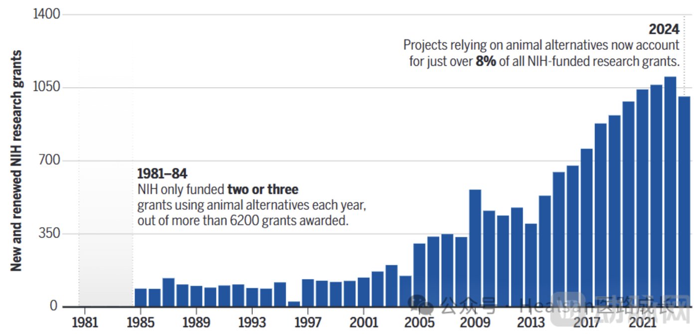 而就在实验猴价格快速回暖的同时,行业的另一边却在紧锣密鼓地推动替代动物实验的法案。2025 年 4 月 3 日,中国工信部等七部门印发 《医药工业数智化转型实施方案 (2025—2030 年)》,明确将 「动物模型数据挖掘与虚拟动物实验」 列为关键技术场景,旨在通过数智化手段减少对活体动物的依赖。一周后,FDA 也迅速发布 《减少临床前安全研究中动物测试路线图》,系统性地提出了通过 「新方法学」(NAMs) 替代传统动物实验的战略框架。