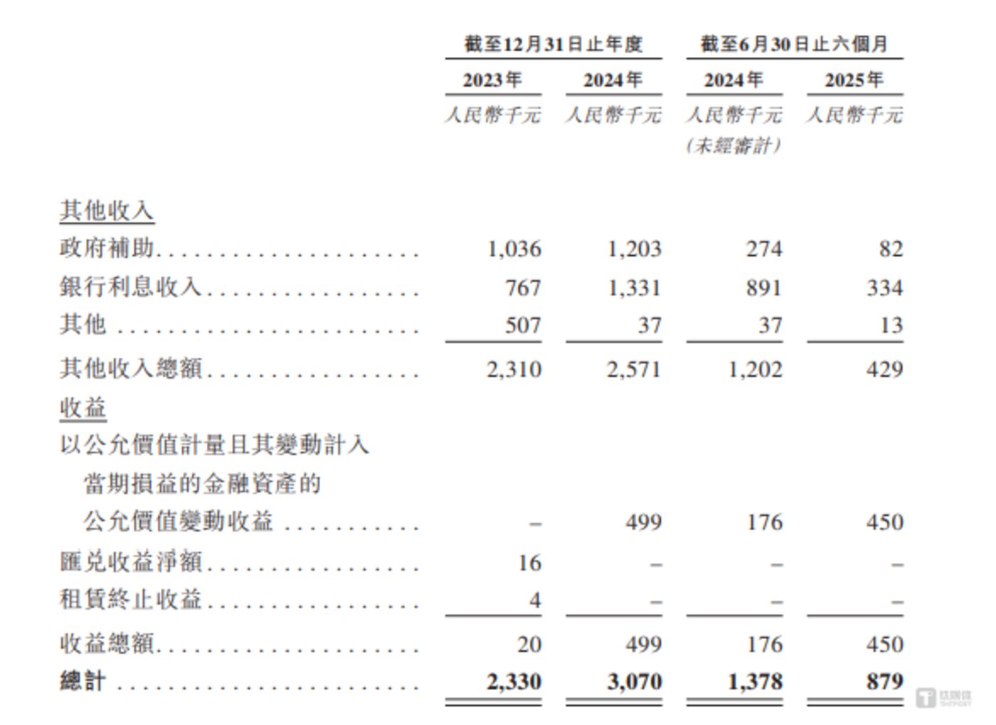 虽然天辰生物拥有着丰富的产品线,但就目前而言,公司的财务状况并不乐观。招股说明书显示,2023 年-2024 年和 2025 年 1-6 月 (下称 「报告期」),天辰生物实现的收入分别为 233 万元、307 万元、87.9 万元,年内利润-9577.8 万元、-13732.1 万元、-9420.8 万元,公司持续在亏损,合计亏损了近 3.27 亿元。需要说明的是,天辰生物上述的收入主要是其他收益,而其他收益又主要依靠政府补助以及银行利息,公司目前无任何产品商业化。