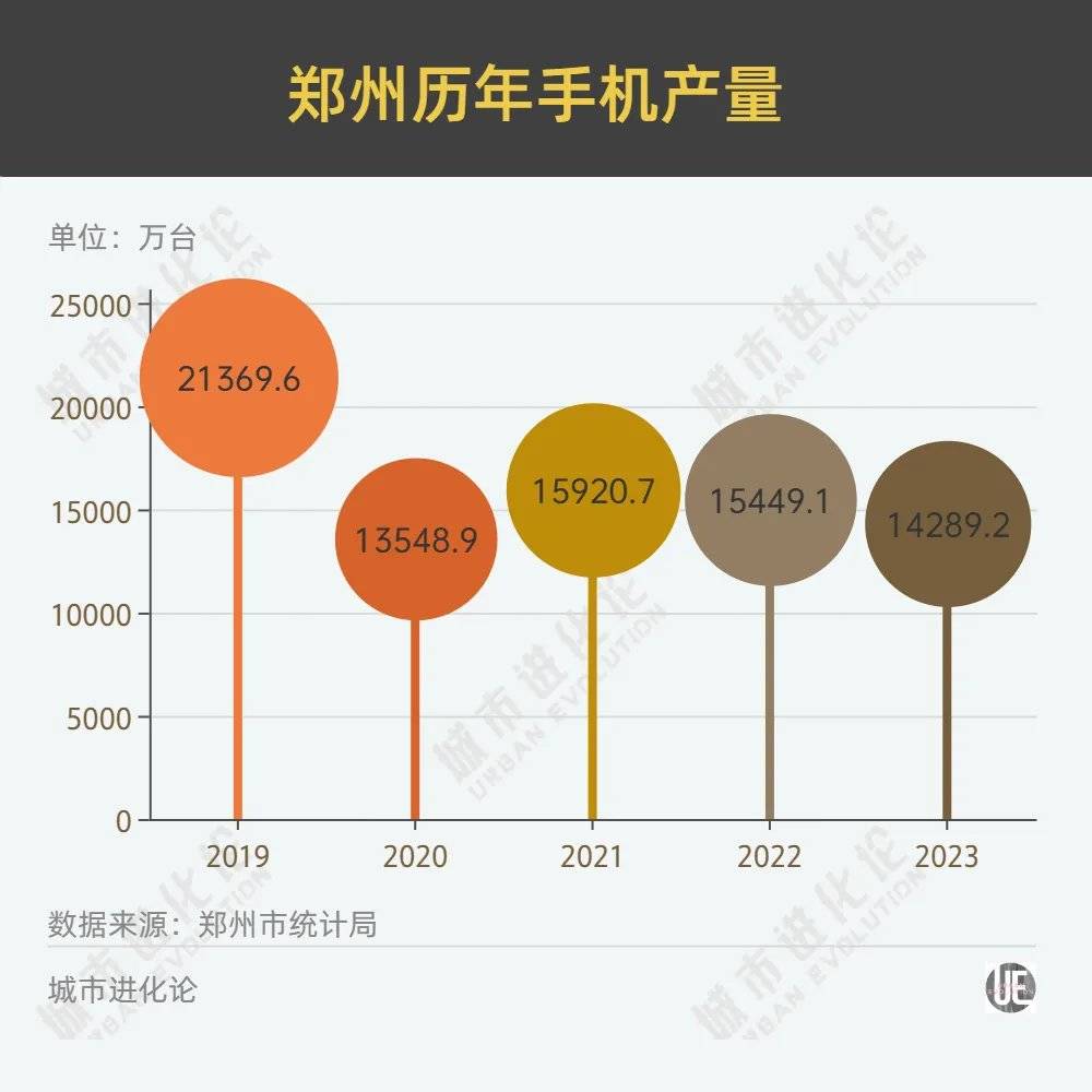 2011 年,也就是富士康落地郑州的第二年,郑州统计局首次在年度统计公报中,将手机产量作为一项单独数据披露,当年郑州生产了 2445 万台手机。