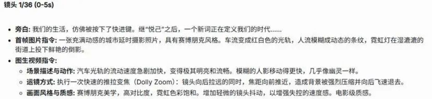 尤其是图生视频指令,涵盖了场景、动作、运镜、风格这些专业化的东西,解决了大麻烦。