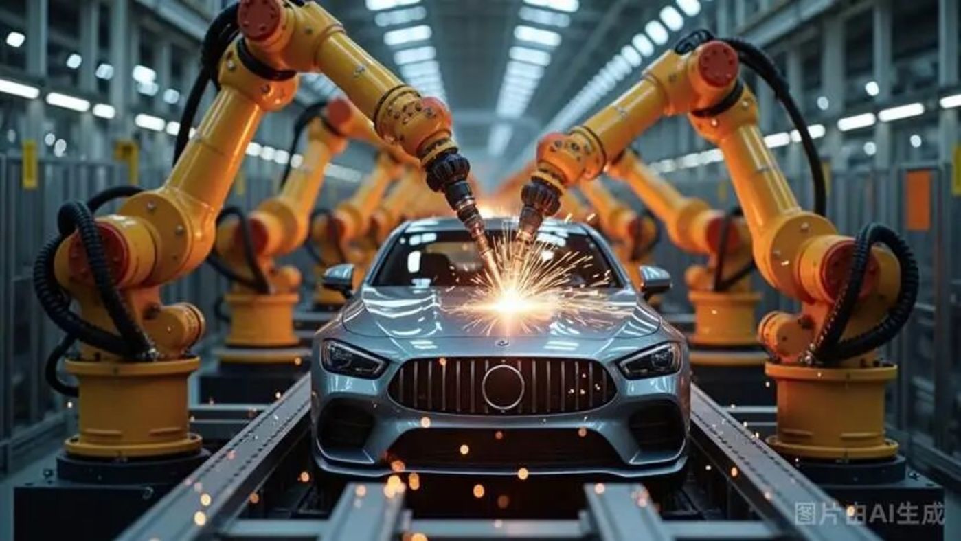 以及,「一条高度精密的汽车生产线,无数机械臂在协同工作,焊接时火花四溅,充满工业美感。」