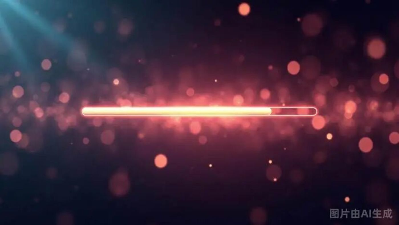 例如,「一条水平的发光进度条,位于画面下方,滑块在起始位置。背景是模糊的彩色光影。」