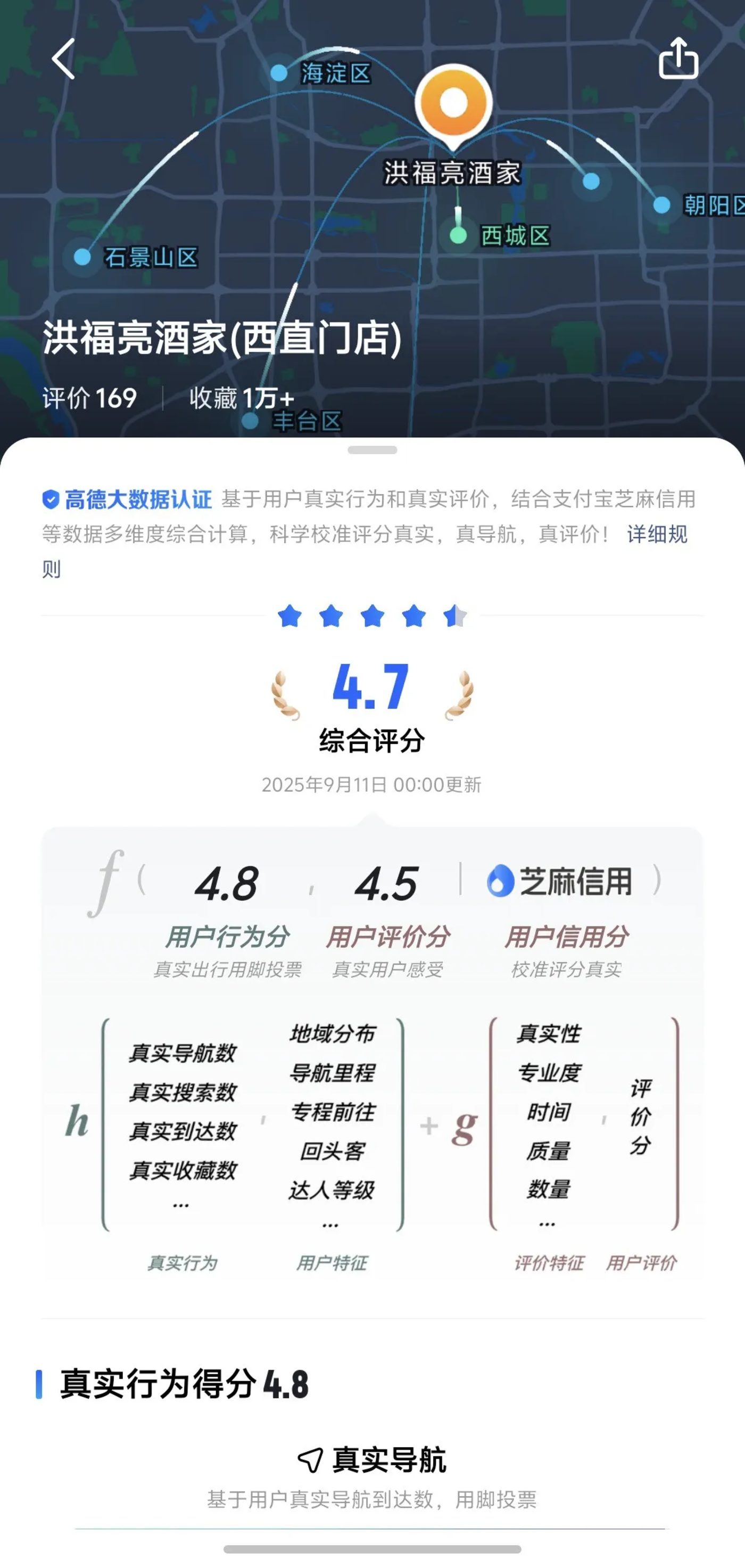 作为连接人与线下空间的产品,高德天然具备两大优势:场景覆盖全,用户用高德导航去餐厅、酒店、理发店、加油站,恰好是线下服务业的核心领域;数据实时性强,导航目的地、停留时长、搜索记录都是实时生成的,能真实反映商家的最新口碑。