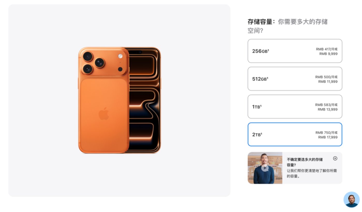 同时,美国对智能手机加征的关税增加了苹果的成本,苹果在 Pro Max 顶端开辟超高端市场,用 2TB 版本的溢价来对冲整体成本压力,从而既满足了政策要求,又保证公司的利润水平。