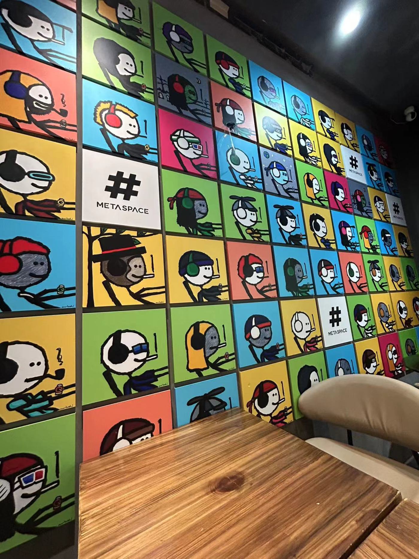 ● 墙上摆满了有名的 NFT 头像。摄影:赵一帆