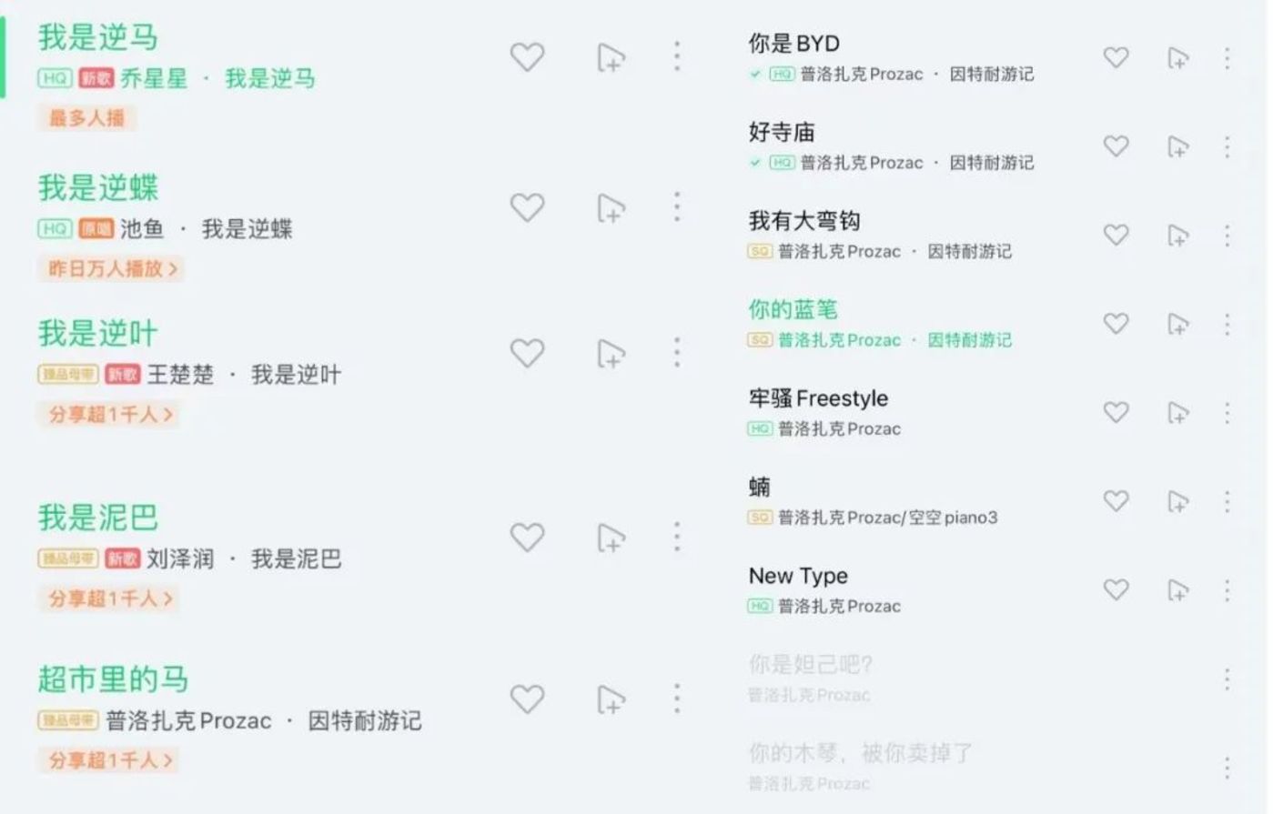 比如在音乐平台上充斥着各种逆天神曲,它们靠着谐音擦边、搏眼球的方式掠夺市场份额,使得真正优质的作品不易出头,更稀释着整个内容池的质量。