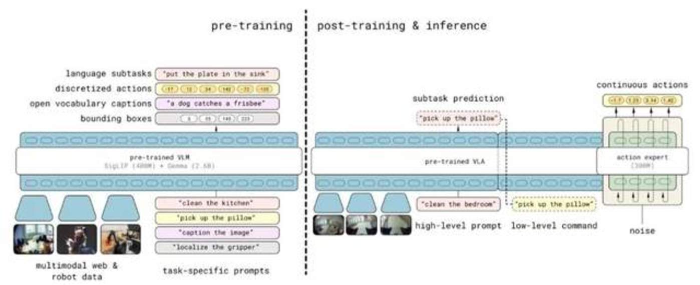 π₀.₅应该有一篇后续的论文,探讨了我们对π₀.₅训练中的一些考量,其中有提到过,我们在π₀.₅的时候,引入了一些网络数据,我不知道严格意义上这算不算合成数据,但确实是希望通过引入一些外界各种各样的知识,去给它一种通用和通感,而不是直接告诉机器人应该什么动作。