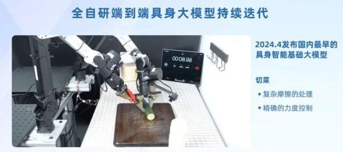 王昊:做家务看似简单,但我觉得可以作为一个完美的机器人的图灵测试了。因为这个过程包含了具身智能机器人领域所有的精细动作,比如切菜,要有精细的力道控制;一些易碎东西处理时,要有非常丰富的感知;也有一些长程规划,比如得看菜谱去做菜、看说明书去使用某个电器、以及各种意外情况的处理等等,基本上已经包含了机器人的所有挑战。