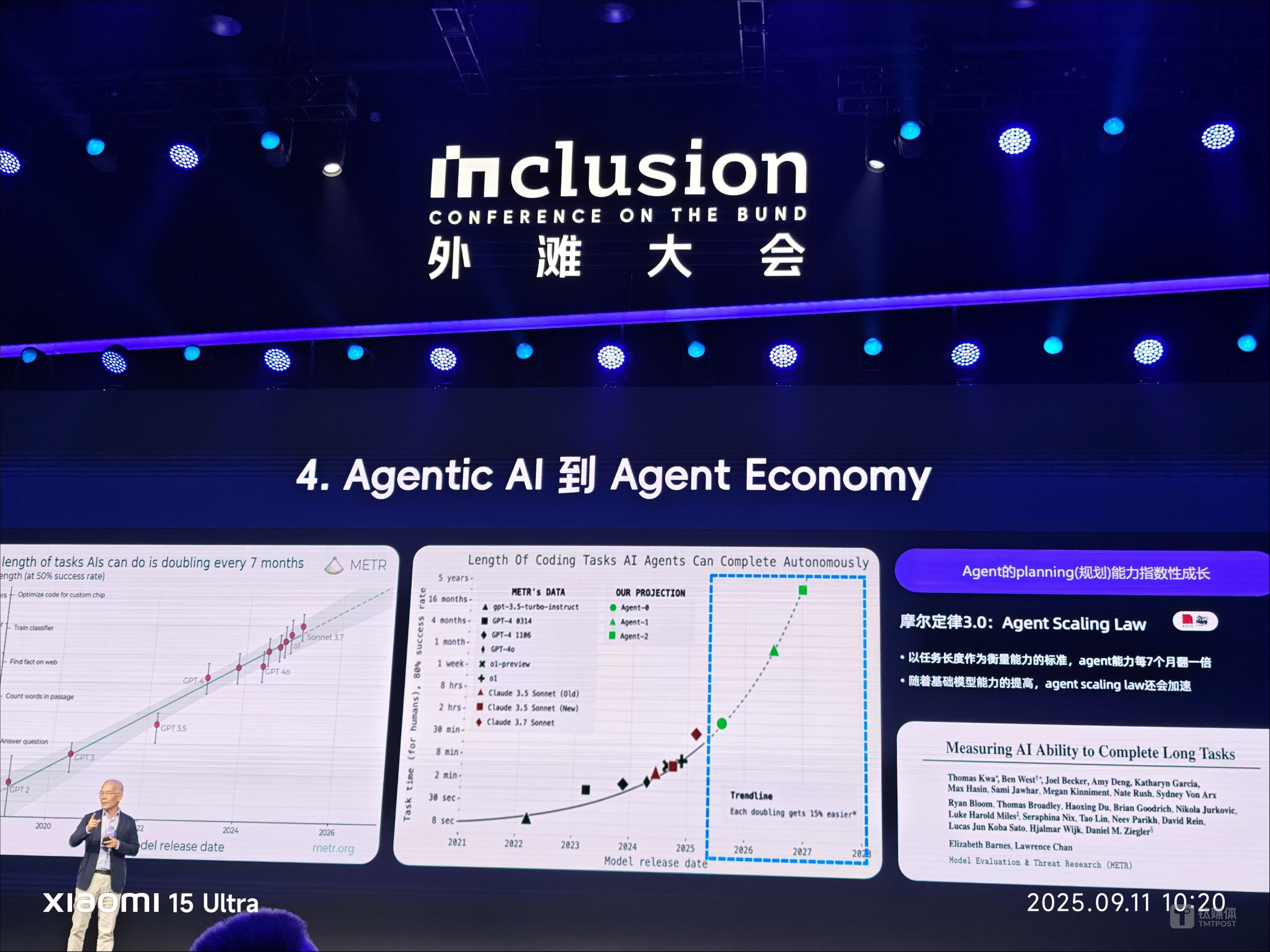 Zhang mentioned that the planning capabilities of AI Agents are growing exponentially, ushering in what he calls Moore』s Law 3.0. On one hand, if we use task length as the benchmark for measuring capability, Agent capabilities double every seven months. On the other hand, as the capabilities of foundational models improve, the scaling law for Agents will accelerate even further.