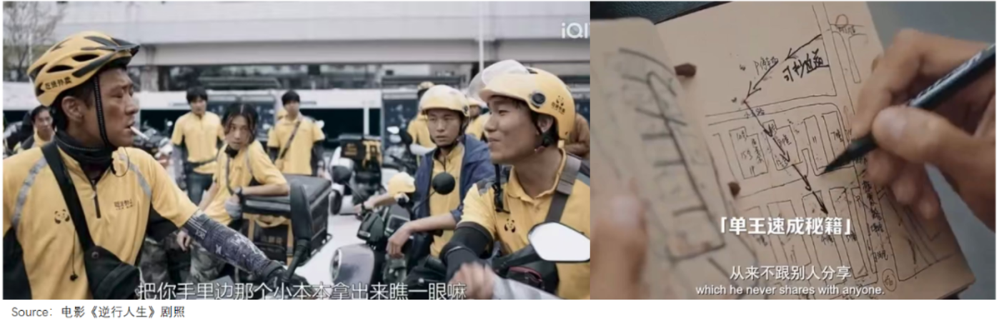 电影 《逆行人生》 里,有这样一幕:一群外卖员围着 「单王」 大黑,让他把画满了各种路线图的 「秘诀宝典」 交出来。