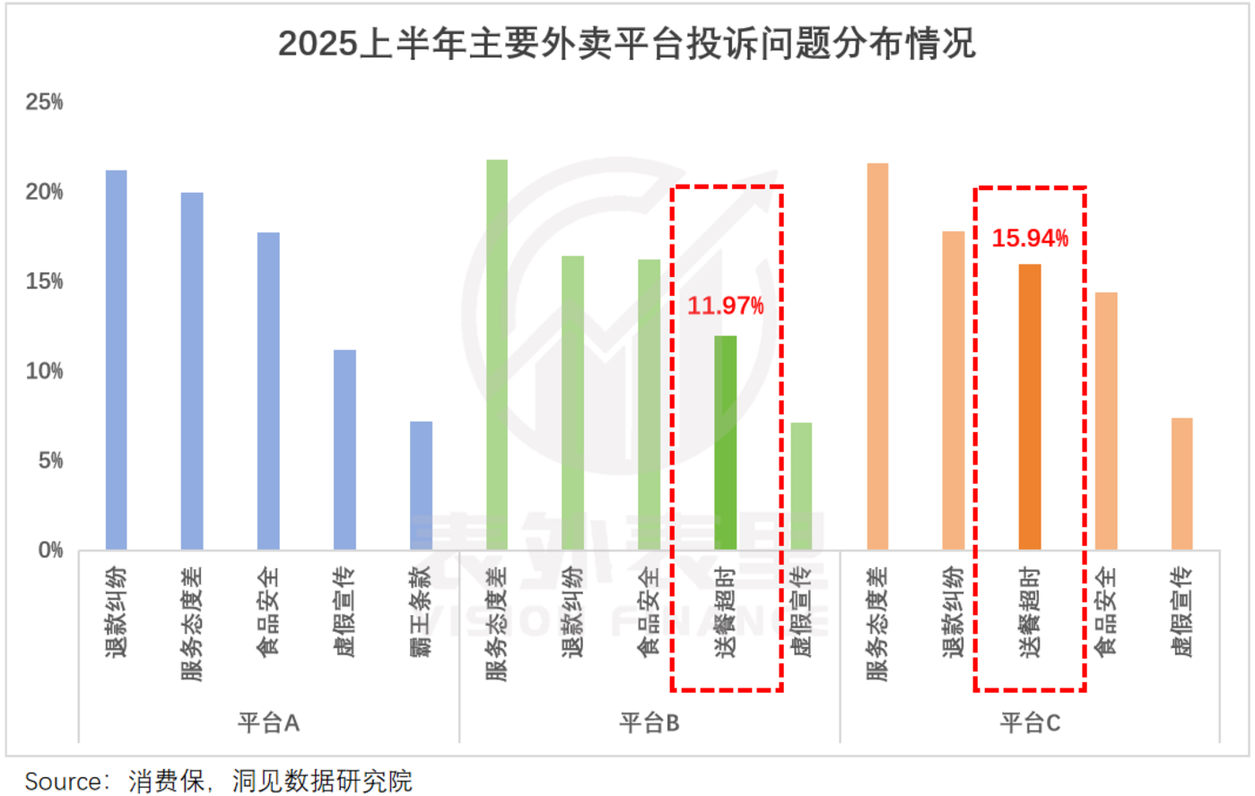 可以看到,订单量以惊人速度膨胀起来后,行业超时率也跟着飙升,「配送超时」 成为消费者主要投诉的问题之一。