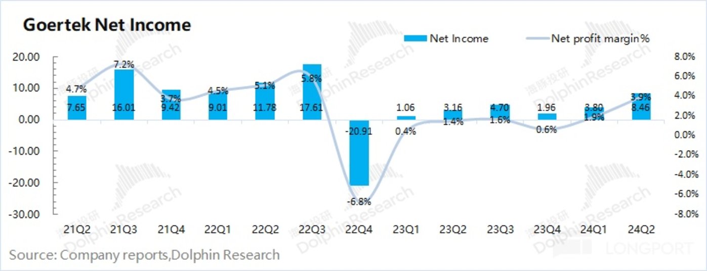 歌尔股份 2024 年第二季度归母净利润 8.46 亿元,增长明显,好于此前市场预期。歌尔股份本季度净利润的回升,主要得益于公司毛利率的增长。