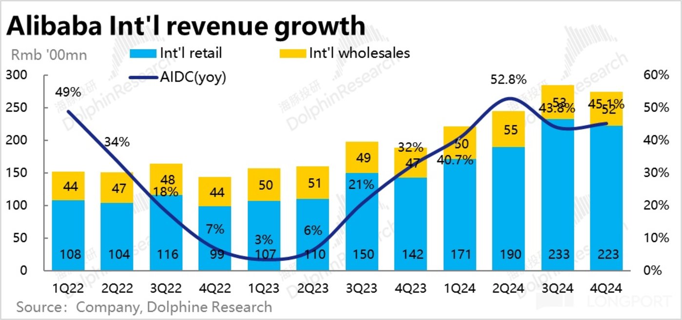 而最元老的 1688.com 业务,作为淘天 「性价比」 打法的一个主要落脚点,在转型 2C 模式的尝试,以及对跨境电商货源上的一定联动,本季度收入同比增长 16.1%,还算不俗。