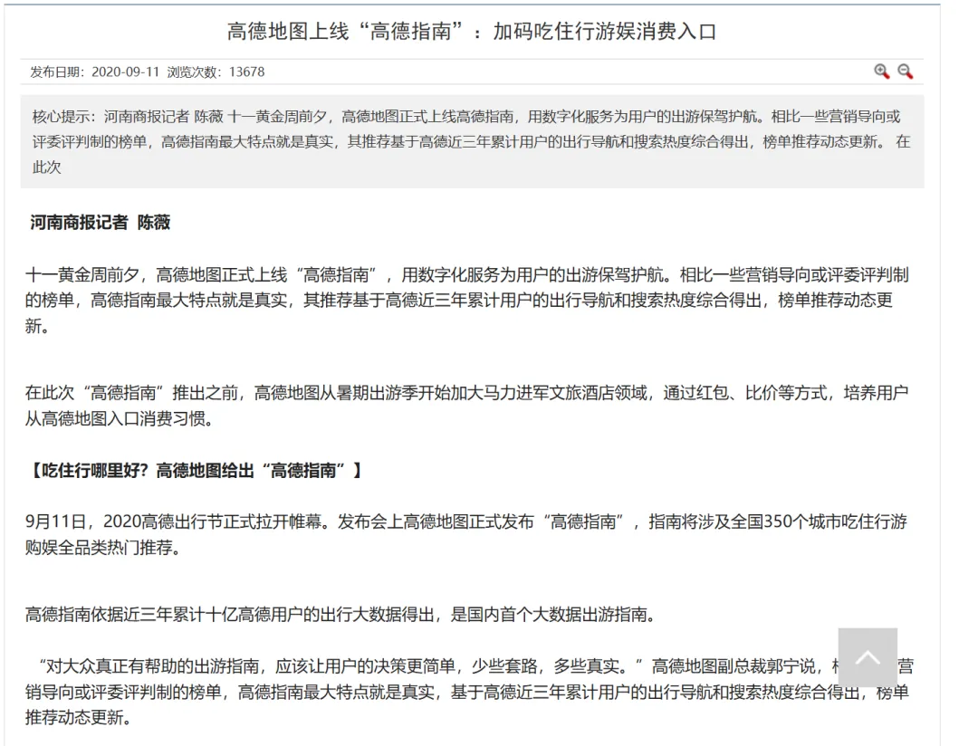 当时媒体报道说,高德指南基于高德近三年累计用户的出行导航和搜索热度综合得出。