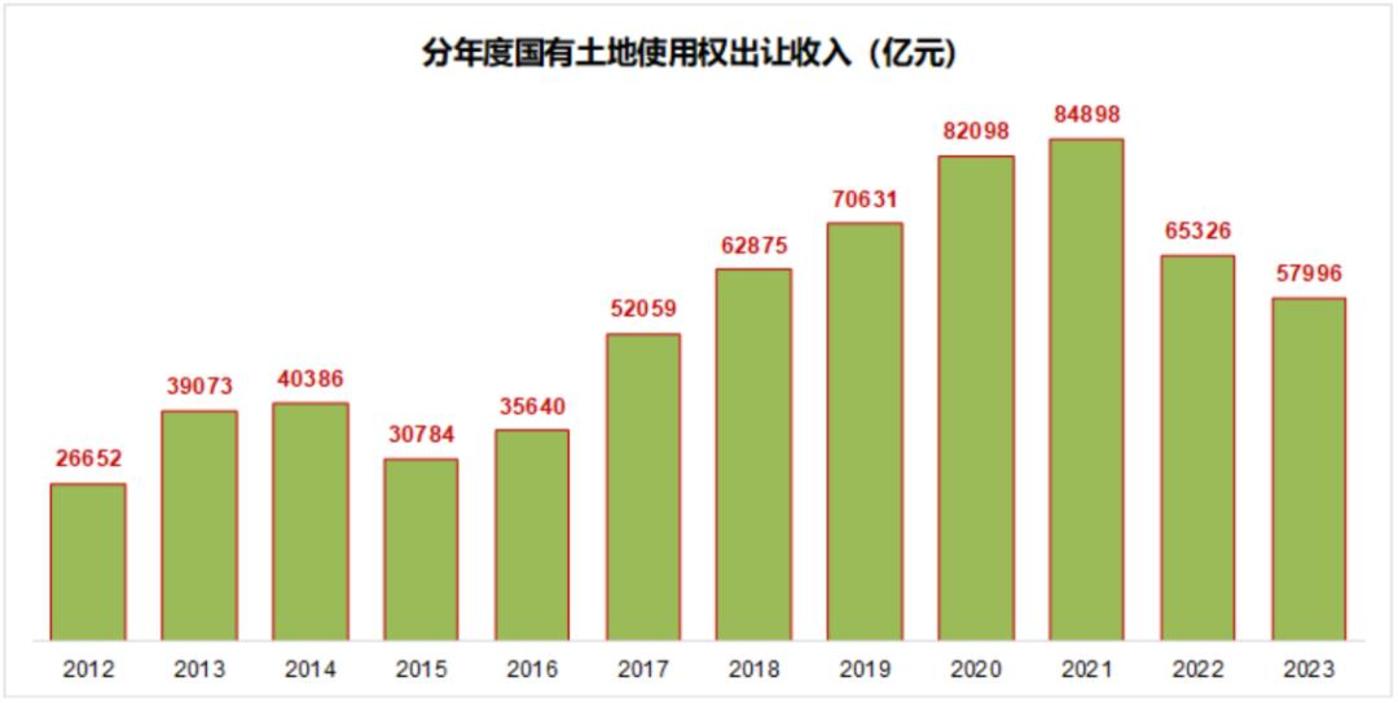 2021 年国有土地出让权收入接近 8.5 万亿,最近几年见顶回落。2024 年上半年只有 1.53 万亿,同比下降 18.3%,基本上回到 2013、2014 年的水平,也就是全年大概 4 万亿左右的收入,中间的 4 万亿缺口,就是行业收缩所要付出的代价。