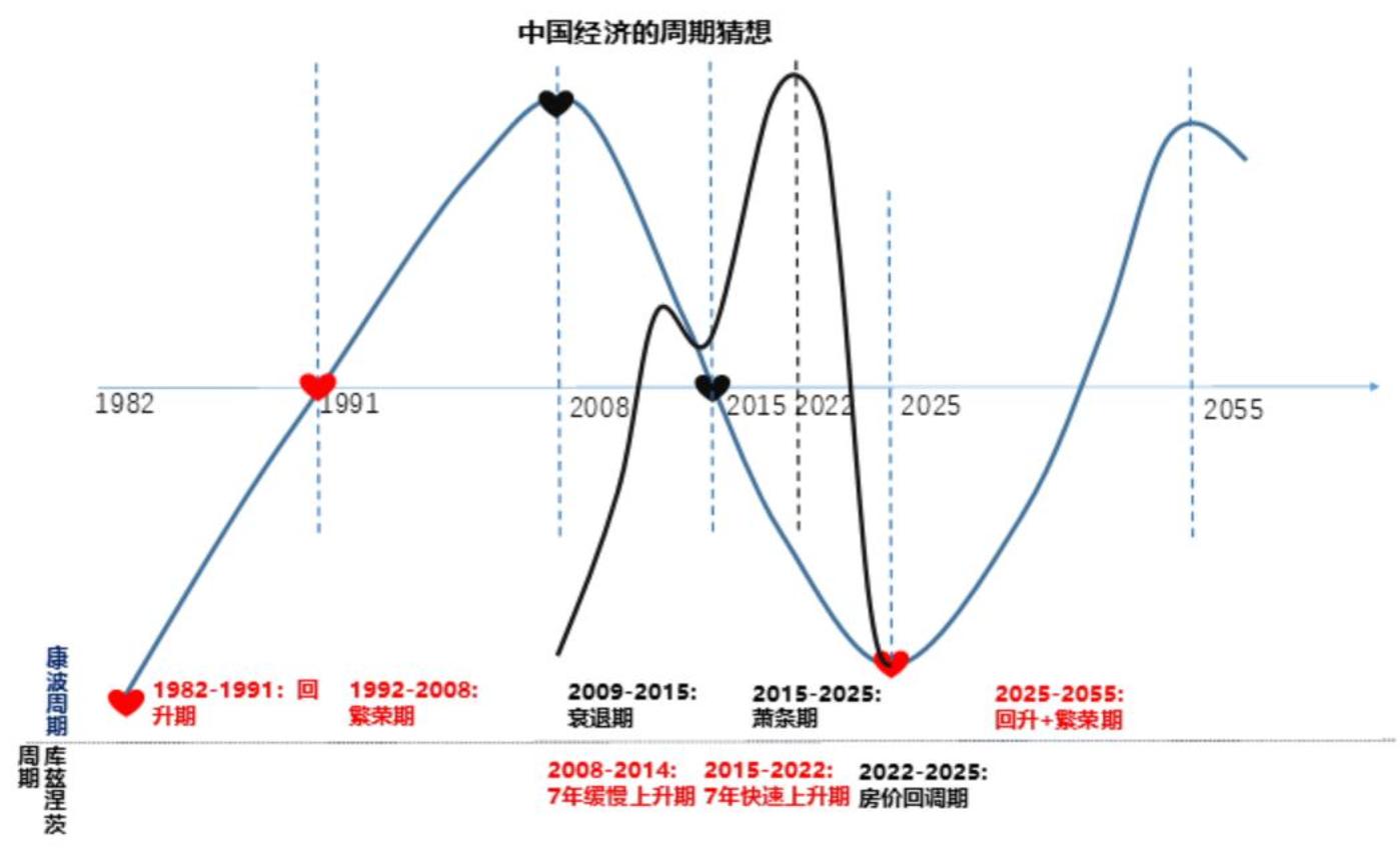 康波周期是生产力周期,影响力长期看更深远但并不酷烈。实际上 2008-2015 年算衰退期,但中国经济还不错,因为从 2008 年开始,中国开启了一波 18 年左右的房地产周期。