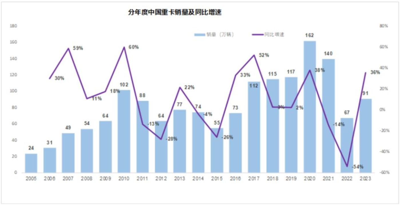 朱格拉周期是设备更新周期,代表产品是重卡和挖掘机。上一轮周期下行期是从 2010-2015 年,从 2016 年到 2020 年是上行期。按照正常的下降五年上升五年的节奏,重卡的下行期时长还没到位。