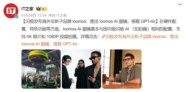 实际上,loomos AI 眼镜可以说是闪极 AI 拍拍镜的“ 换壳版本”,在硬件配置、特色功能方面,两者基本保持一致;不同的是 loomos AI 眼镜采用的大模型是由 GPT-4o 驱动,这一点有别于搭载科大讯飞、云飞励天、通义千问等大模型的闪极 AI 眼镜。