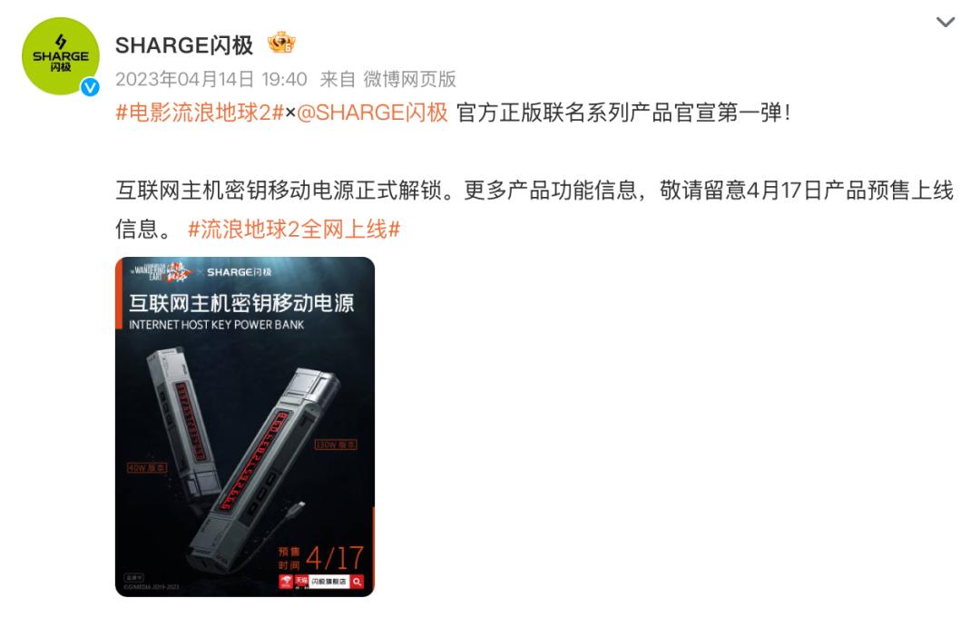 2023 年,闪极曾凭借与电影 《流浪地球 2》 联名的移动电源而出圈,在社媒平台掀起的“ 影视 IP+数码周边” 带货热潮下,闪极很快建立起品牌调性和用户基础。