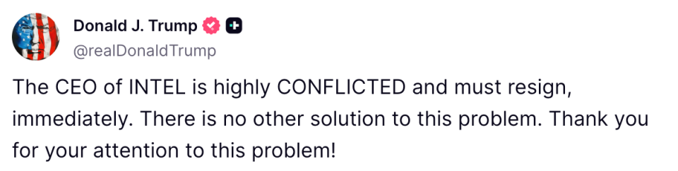 “ 英特尔的首席执行官存在严重的利益冲突,必须立即辞职。”