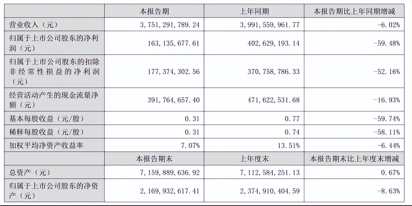 今年上半年,百洋医药的经营情况更加不乐观:营收 37.51 亿元,同比下降 6.02%;归母净利润 1.63 亿元,同比下降 59.48%。