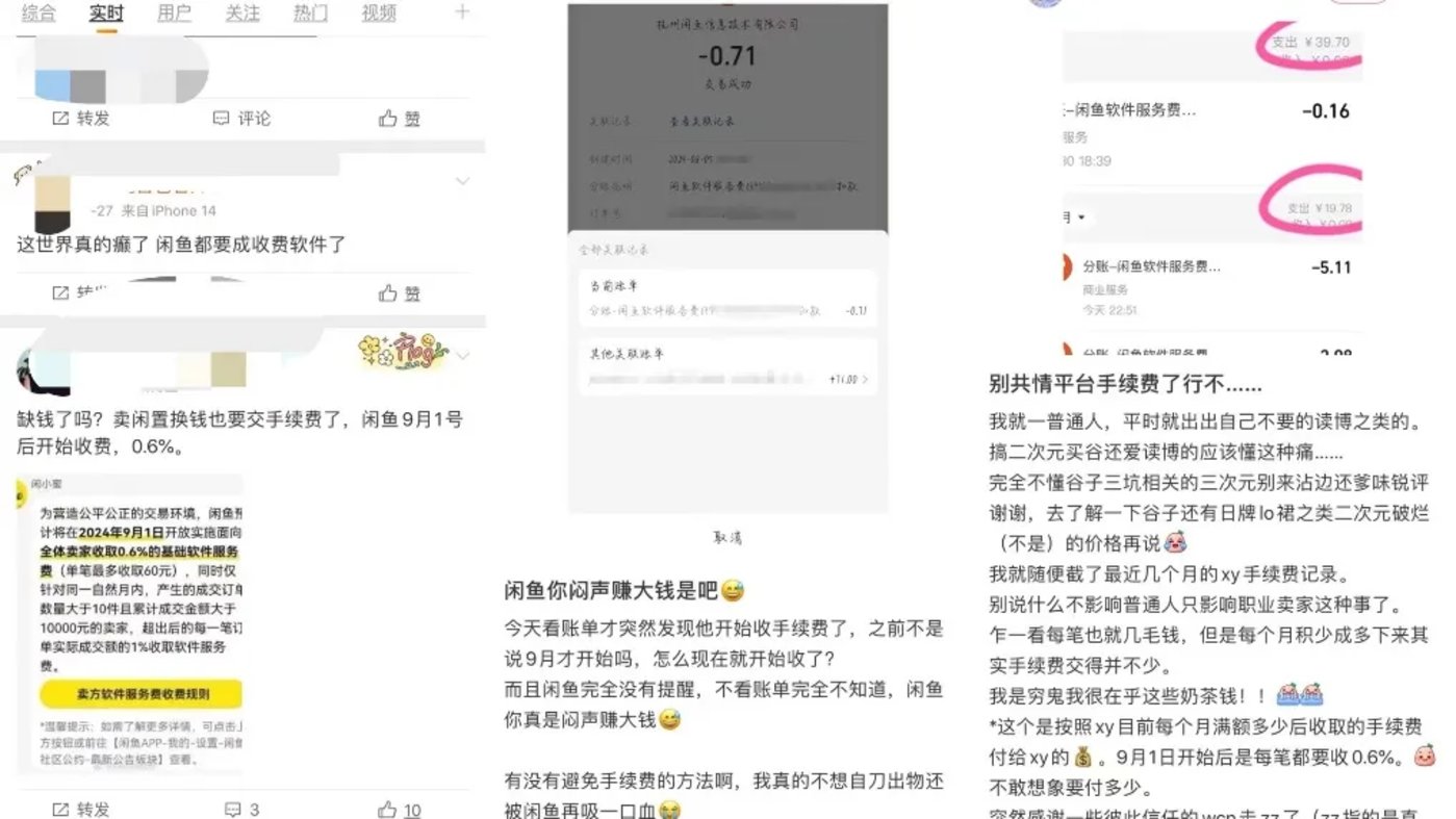 而在微博上,也有不少用户表示不理解,「我卖个五块钱的东西还收我三分钱手续费,还要伺候难缠客户,拜拜了」「本来出物都要倒贴钱了,还收我 0.6% 的服务费」「缺钱了吗?卖闲置换钱也要交手续费」……