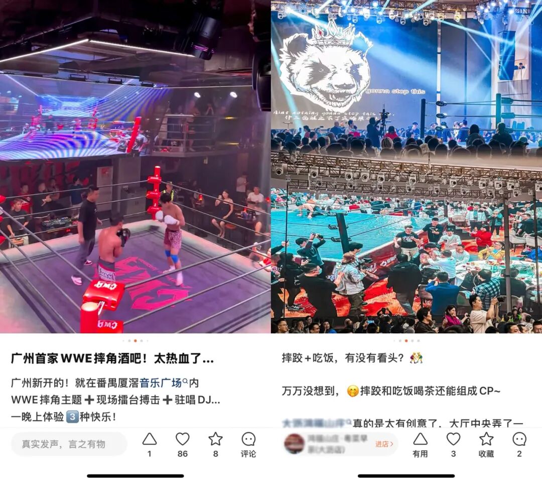 以广东部分酒楼为例,其在大厅中央搭建的摔跤擂台已成为引流利器。“ 演员们真的很敬业,动的都是‘ 真功夫’,一晚上好几场表演,看得非常过瘾!” 一位食客在大众点评上这样写道。这种基于本地的传统武术文化氛围,将表演与早茶相结合的方式,不仅没有削弱餐饮的本质,反而通过增强表演的真实性与仪式感,让用餐体验更加丰富多元。