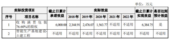 对于该项目的后续运行情况,公司披露的 2022 年度募集资金存放与实际使用情况的专项报告文件显示,收购满贯包装项目在 2022 年并未达到预计效益。