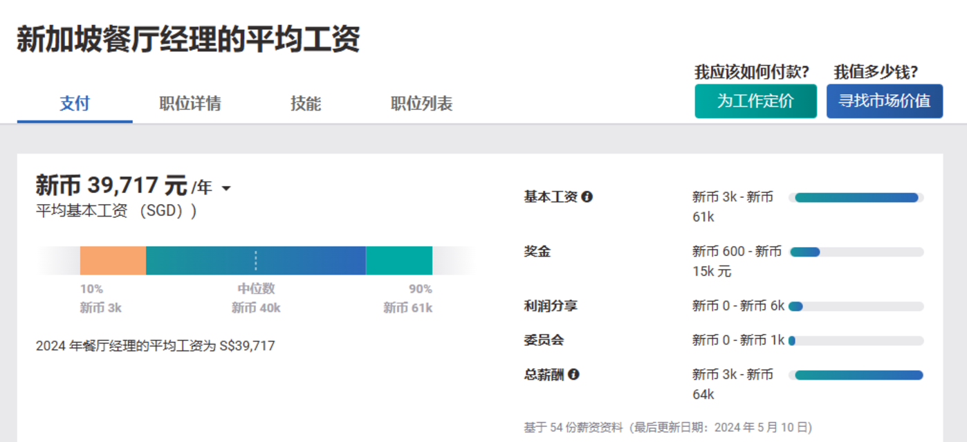 一位在新加坡淘大街熟食中心经营烤肉档的老板称,其每月经营成本从 2019 年的 18000 新元上涨到今年 7 月的 22000 新元。成本上涨又无法转嫁给消费者,她无奈将烤肉饭价格上涨 0.2 新元,当日客流量直接暴跌 30%。现在新加坡做餐饮生意,愈发难做。相较于餐饮小贩无需承担人力成本,餐饮门店经营成本可能更高。按照 2023 年新加坡相关政策要求,食品服务业工人以 2023 年 1750 新元最低工资为基础,按照每年 165 新元的速度逐步增长,2025 年最低工资需达到 2080 新元。另据 Payscale 平台显示,新加坡餐厅经理平均年薪为 39717 新元。换言之,按照国内新茶饮 1 家门店配备 1 名店长和 4 名服务员计算,保守估计一家新加坡新茶饮门店一年人力成本高达 12 万新元以上 (约合人民币 64 万元)。