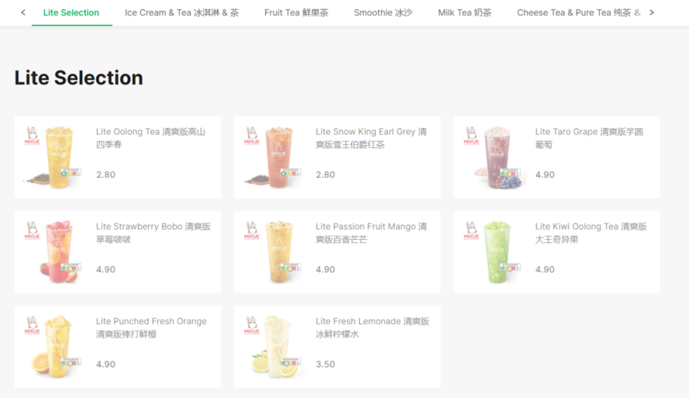 此外,2023 年底新加坡将饮料营养等级标签扩大到现泡饮料,以及新加坡消费者对茶叶认知和健康意识提高,新加坡消费者更关注健康、品牌方使用产品源头。喜茶新店延续 2023 年启动的 「透明化」 作业,将饮品成分一一列出。如多肉葡萄每 100 毫升含 39 卡路里,成分包括新鲜葡萄果肉、茉莉花茶、葡萄汁、葡萄果冻、糖或甜味剂或蔗糖。奈雪新店主打原叶好茶+鲜奶+鲜果,首推三大产品是霸气香水芝士草莓、霸气香水葡萄和香水茉莉初雪鲜奶茶。霸王茶姬也顺应新加坡饮料行业的减糖控糖要求,调整产品组合。