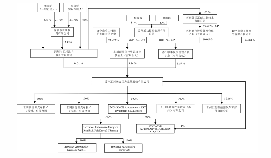 据招股书显示,IPO 前,汇川技术拥有联合动力 94.51% 的股份,而朱兴明父女合计控制汇川技术 19.38% 股份对应的表决权,既是汇川技术的实控人,亦为联合动力的实控人。
