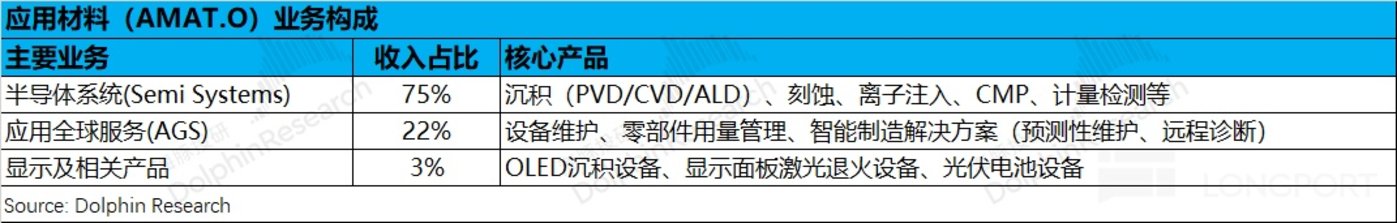 综合来看,应用材料 AMAT 当前业务重心集中于半导体设备领域,尤其是薄膜沉积、刻蚀和 CMP 设备方面。公司在薄膜沉积设备和 CMP 设备优势的基础上,继续丰富产品种类和拓展产线整合能力,逐渐坐稳了半导体设备领域的领先位置。