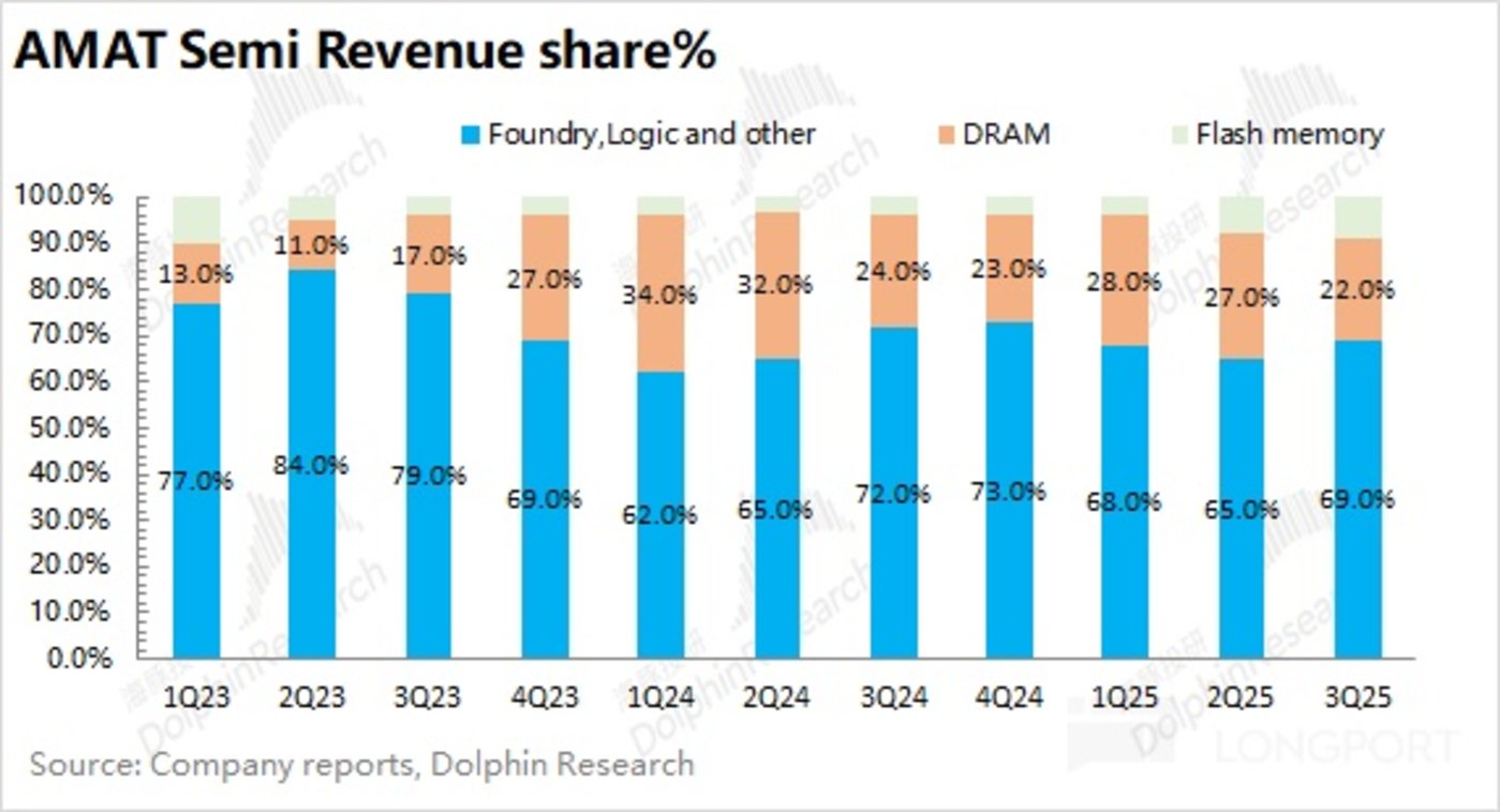 c) 逻辑与存储双轮驱动:面对半导体周期性波动,应用材料以逻辑市场 (占 7 成收入) 为基本盘,对冲存储市场 (占 2-3 成) 的强周期风险。2025 年逻辑端借台积电 AI 芯片需求稳增长,存储端受 HBM 相关开支反弹的带动,双市场互补布局,使其在行业波动中保持相对稳健。