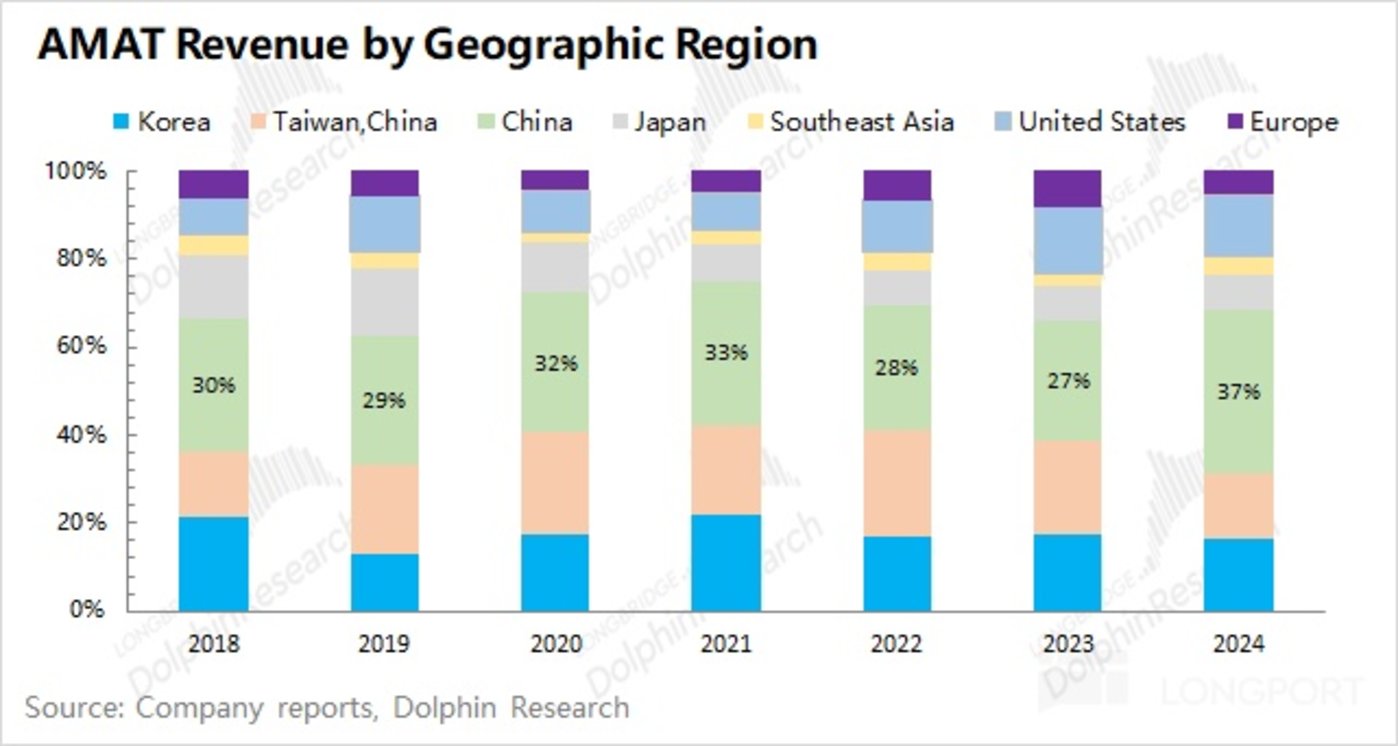 从应用材料的地区收入变化看,遵循了半导体制造业的产业转移的节奏,依次是 「日本 - 韩国及中国台湾 - 中国大陆」 的过程。而这也反映了公司的产品力,在各个阶段,分别都得到了不同地区客户的青睐。