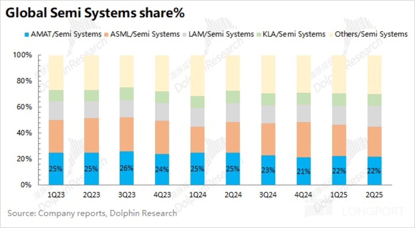 b) 在阿斯麦垄断光刻设备的格局下,应用材料聚焦刻蚀、沉积、CMP 等关键环节,以 PVD(市占超 80%)、CMP(市占 64%) 在细分赛道构建壁垒,避开红海竞争的同时,通过 「多设备协同 + 整线解决方案」,成为晶圆厂除光刻机外的 「刚需选择」,印证细分赛道深耕的战略价值;