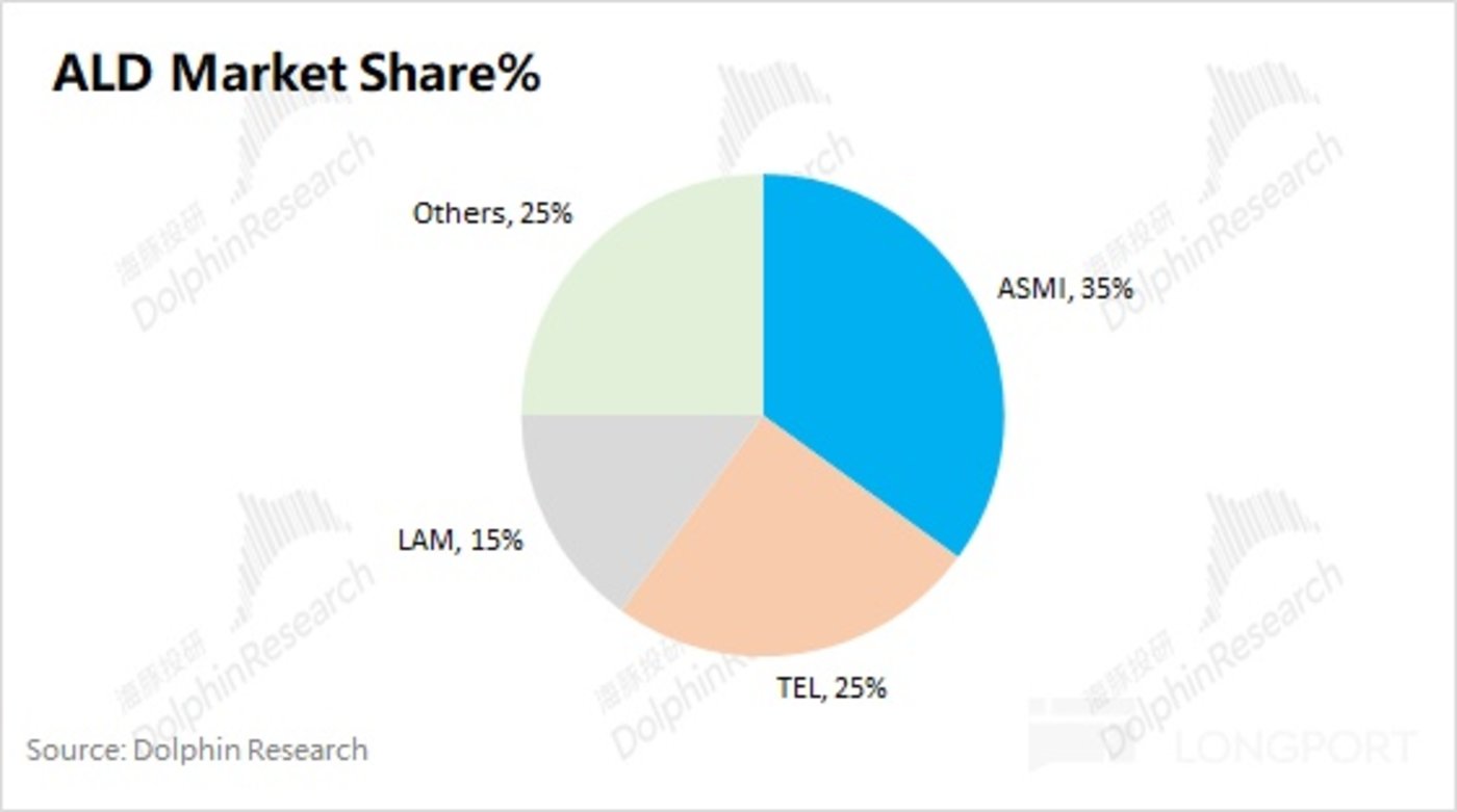 由于 ALD 设备需与制程工艺深度绑定,阿斯麦国际 ASMI、TEL 通过与台积电、三星的联合研发早早锁定先进制程订单,而应用材料 AMAT 的 ALD 设备更多作为其 「沉积 + 刻蚀」 综合解决方案的补充,未能建立独立的客户粘性,导致在先进制程招标中屡屡错失份额。