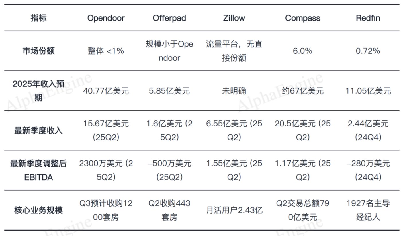 相比之下,Redfin 和 Offerpad 在各自领域均处于追赶者地位,规模劣势明显。