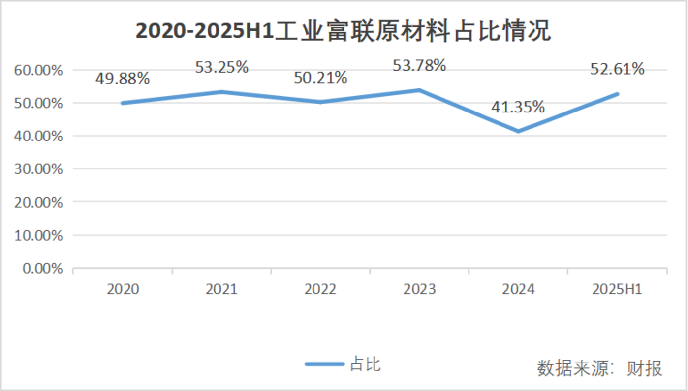 何况细看工业富联的库存结构,从来都是原材料占比相对较高,自 2020 年始终维持在 50% 区间,能在一定程度上缓解因原材料价格波动导致成本增加的压力。《56 天大涨 124.38%,景旺电子靠实力还是运气》 曾有介绍,由于铜箔、玻纤布等的供应不足,PCB 价格正在提升,可见原材料提前储备不仅能够应对快速扩张的需求,还能避免上游风险传递。