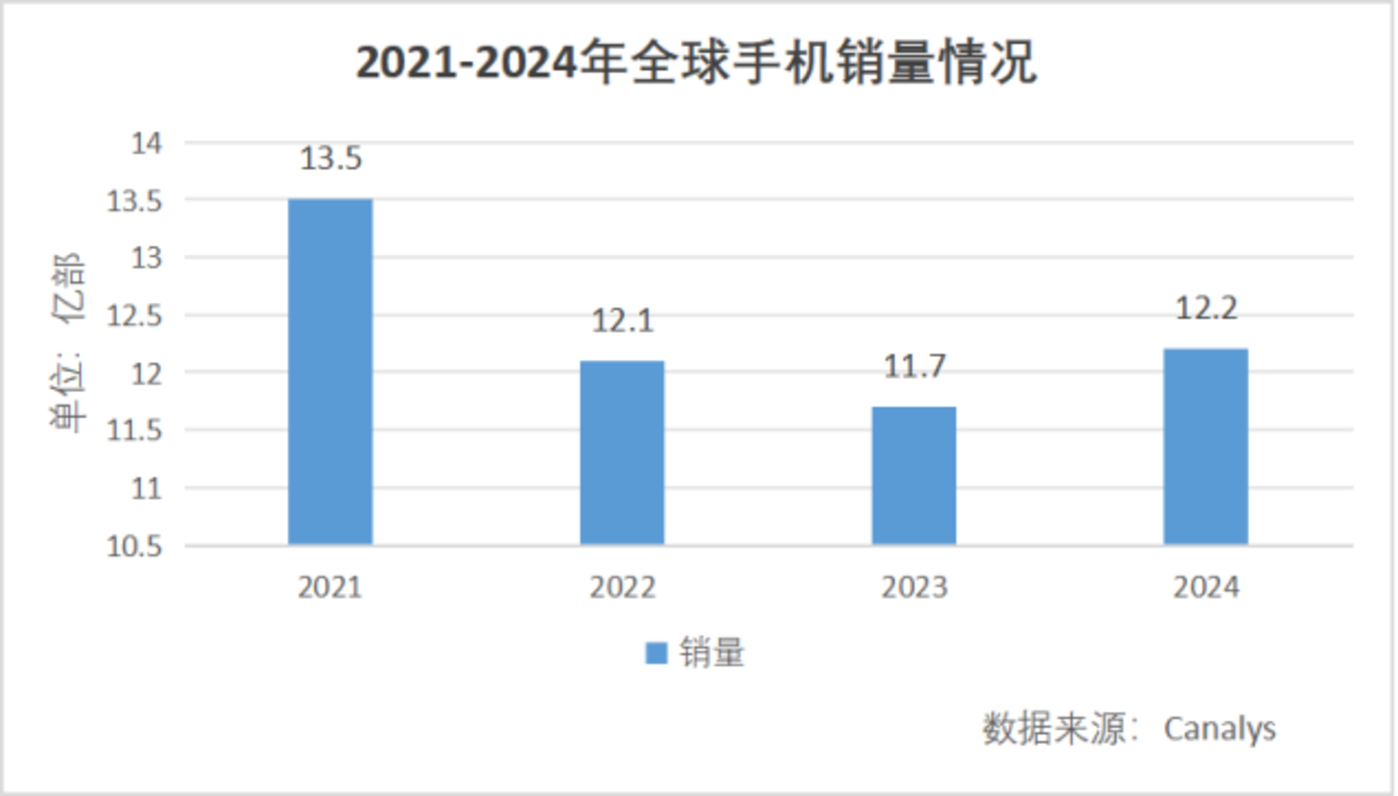 相信这些企业中必定有不少移动设备商,毕竟这是一个正在收窄的圈层。只看 Canalys 统计数据,手机市场出货量下行趋势渐成。虽然 AI 手机的概念正在驱动新潮流,但毕竟规模有限,2024 年仅占全球智能手机出货量的 16%。
