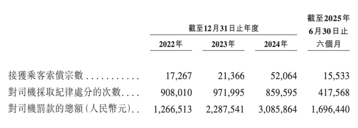 同期,公司与网约车服务有关的行政处罚的罚款总额分别为 160 万元、240 万元、240 万元及 210 万元。由此可见,公司 2025 年上半年的罚款总额已经接近 2024 年全年的金额了。