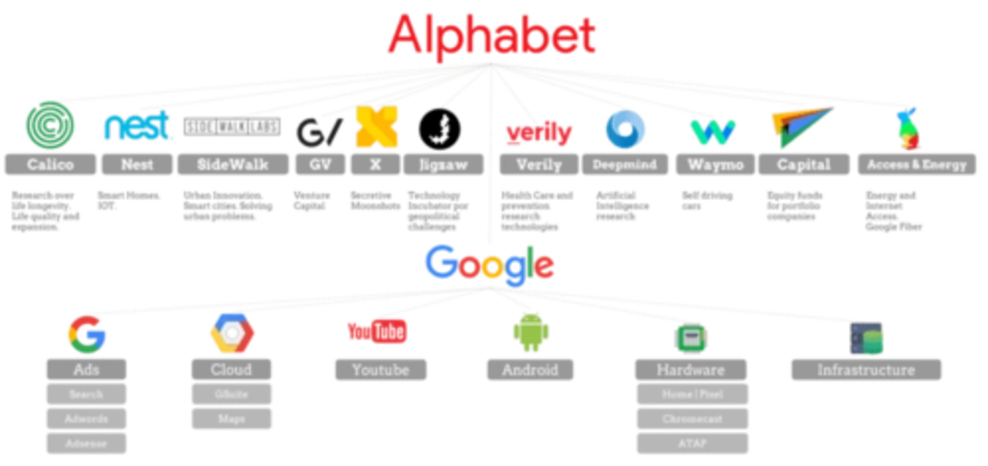 ▲谷歌母公司 AIphabet 的产品矩阵共拥有数十亿用户。