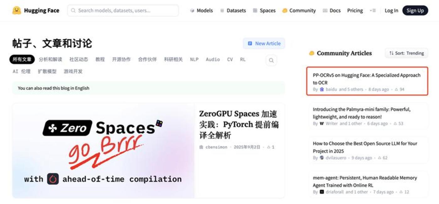 这个登顶不难理解。千分之一的参数量、足够 SOTA 的效果、轻量级部署……这几个反差足够吸引广大开发者成为源源不断的 「自来水」。 据了解,截至目前,这个由百度飞桨团队发布的技术 Blog 已经连续一周霸榜 Hugging Face 博客热度。